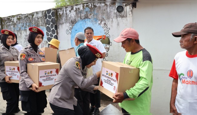 Selain santunan kepada 30 anak yatim, Satreskrim Polres Malang Polda Jatim juga menyalurkan 30 paket sembako kepada penyandang disabilitas dan komunitas becak kayuh di Kepanjen.