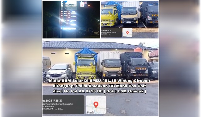 Mafia BBM Solar Di SPBU 451.15 Winong Cirebon ditangkap, LSM Gmicak Monitoring Polisi Amankan BB Mobil Box Colt diesel No Pol AA 8755 BE