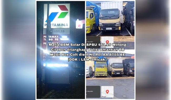 LSM Gmicak Monitoring Penangkapan Mafia BBM Solar Di SPBU 451.15 Winong dengan BB Mobil Box Colt diesel No Pol AA 8755 BE- oleh Polresta Cirebon