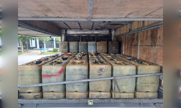 Barang bukti yang diamankan berupa 92 (Sembilan Puluh Dua) Jerigen ukuran 20 Liter, 1 (Satu) unit Mobil Daihatsu Pick Up Warna Abu-Abu Metalik beserta STNK,3 (Tiga) Buah Corong Pelastik.