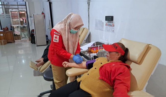 Kegiatan berlangsung lancar dan penuh semangat. Para peserta tampak antusias mengikuti proses donor darah yang dipandu oleh petugas PMI Nganjuk.